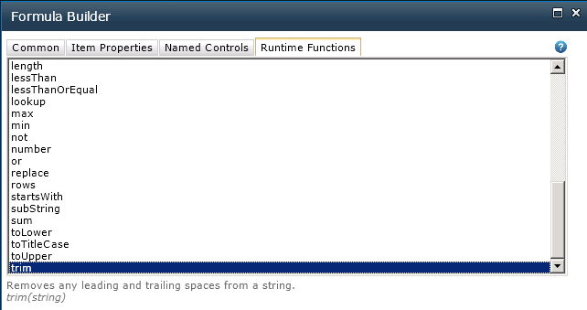 After a while I realised that Nintex also provide a Runtime Function called “trim”