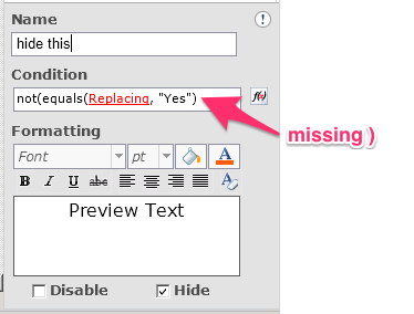 and I always ended up to delete some rules, re-create them, re-check all of them just to find which of my fields’ rule was not hidden by itself but would hide the whole form.